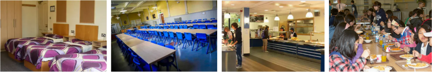 Les hébergements modernes et sécurisés sont conçus pour favoriser les échanges, avec des chambres partagées par 2 à 5 élèves, organisées par âge et sexe. La sécurité est garantie 24h/24, avec un encadrant pour 15 jeunes. Le Wi-Fi est sécurisé, et chaque résident bénéficie de services de ménage quotidien et de buanderie hebdomadaire.
