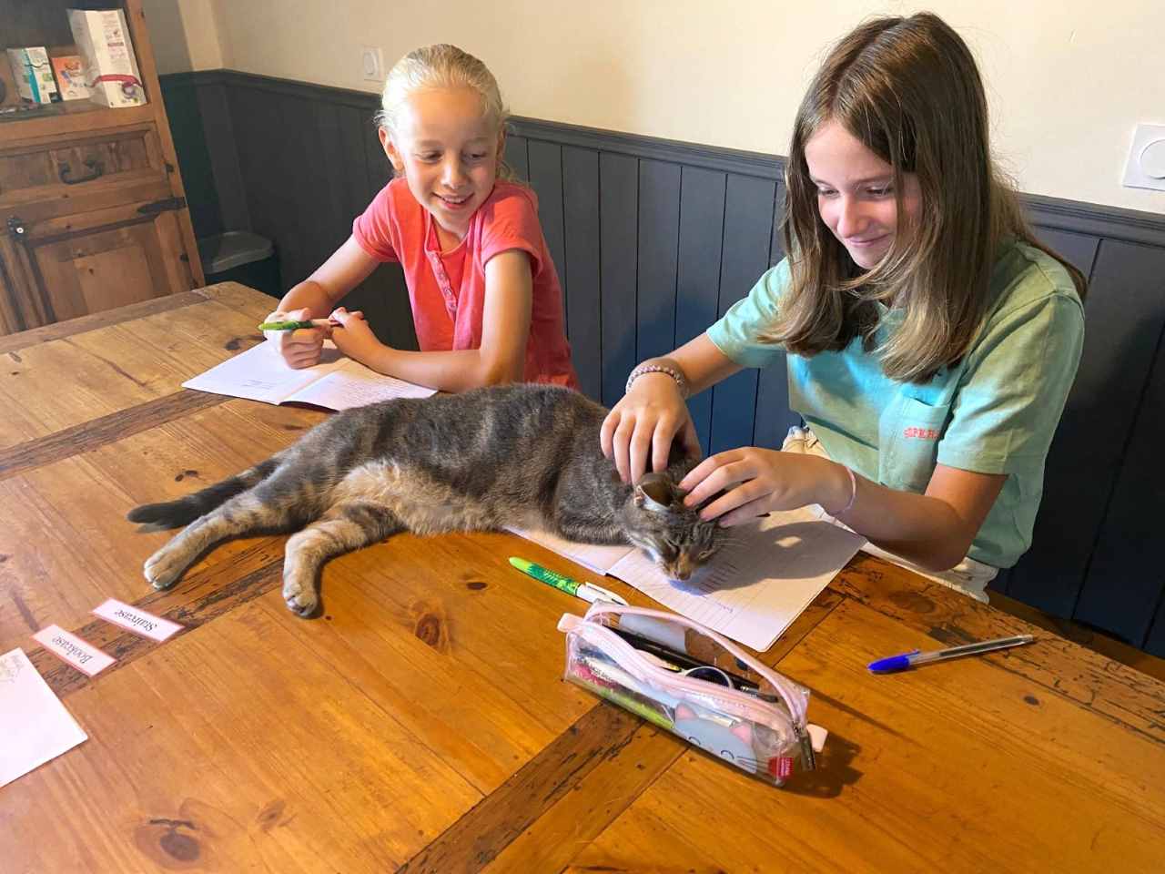 Nous remercions David & Nicky pour leur accueil, disponibilité et gentillesse. Notre fille Chiara à passé une excellente semaine dans leur jolie maison Bretonne, rythmée par des cours très intéressants, de qualité et adaptés le matin; diverses activités ludiques l'après-midi : accrobranche, laser-game parc aquatique, attractions..., de bons moments de partage, des fous rire, de délicieux repas et la compagnie de Storm, une adorable chienne Malamute et de chats. Je recommande fortement ce couple fort sympathique, chaleureux, investi et sérieux et les remercie pour le petit récapitulatif quotidien en photos.