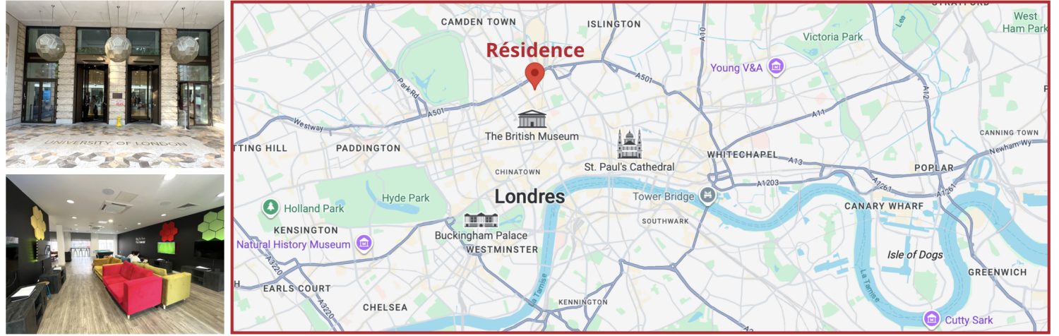 Le logement se fera en résidence. La résidence est située à quelques minutes à pied de la gare de King’s Cross, ce qui facilite l’accès aux différents sites de cours, d’activités et aux transports en commun pour découvrir Londres.