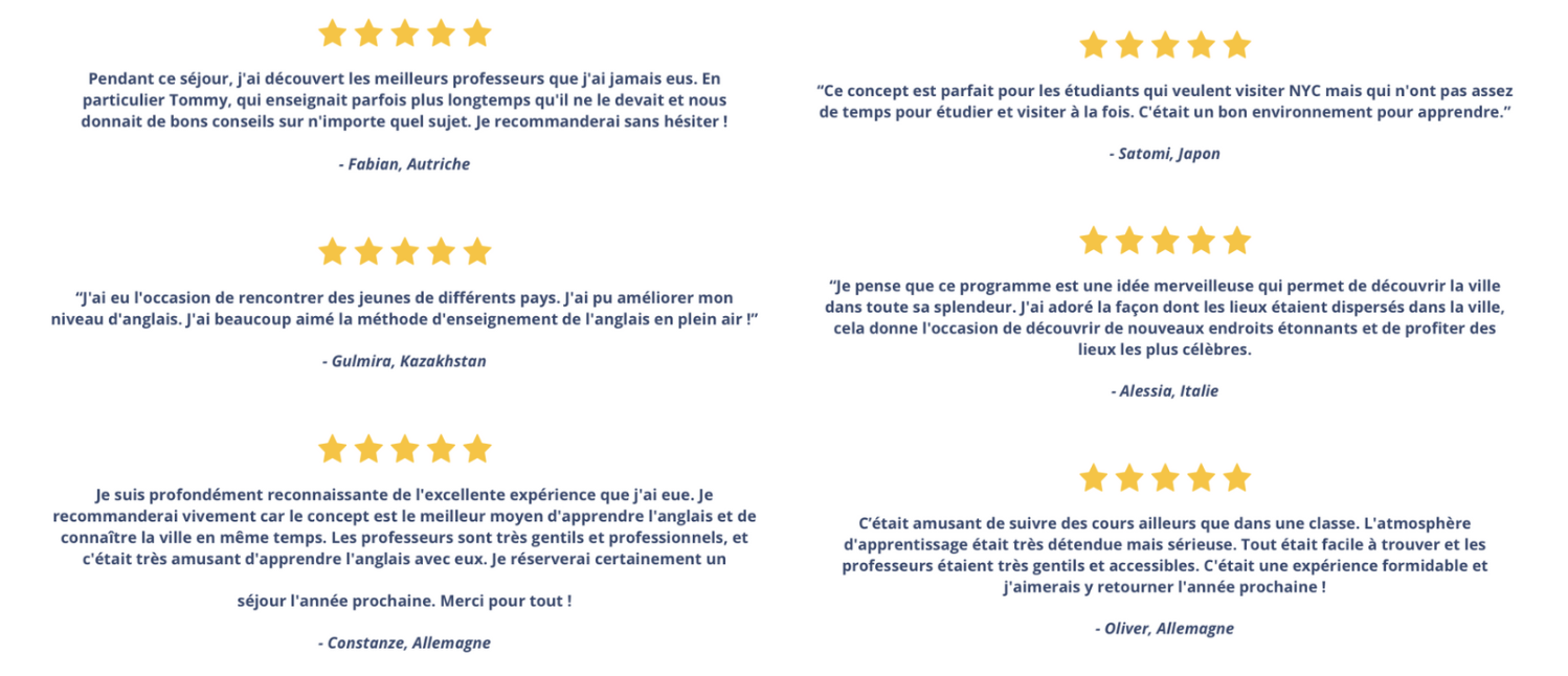 Avec English Outdoors, la ville elle-même est ton terrain d’apprentissage. L'approche combine anglais + tourisme pour te plonger dans un anglais vivant, naturel, au cœur de l’action.