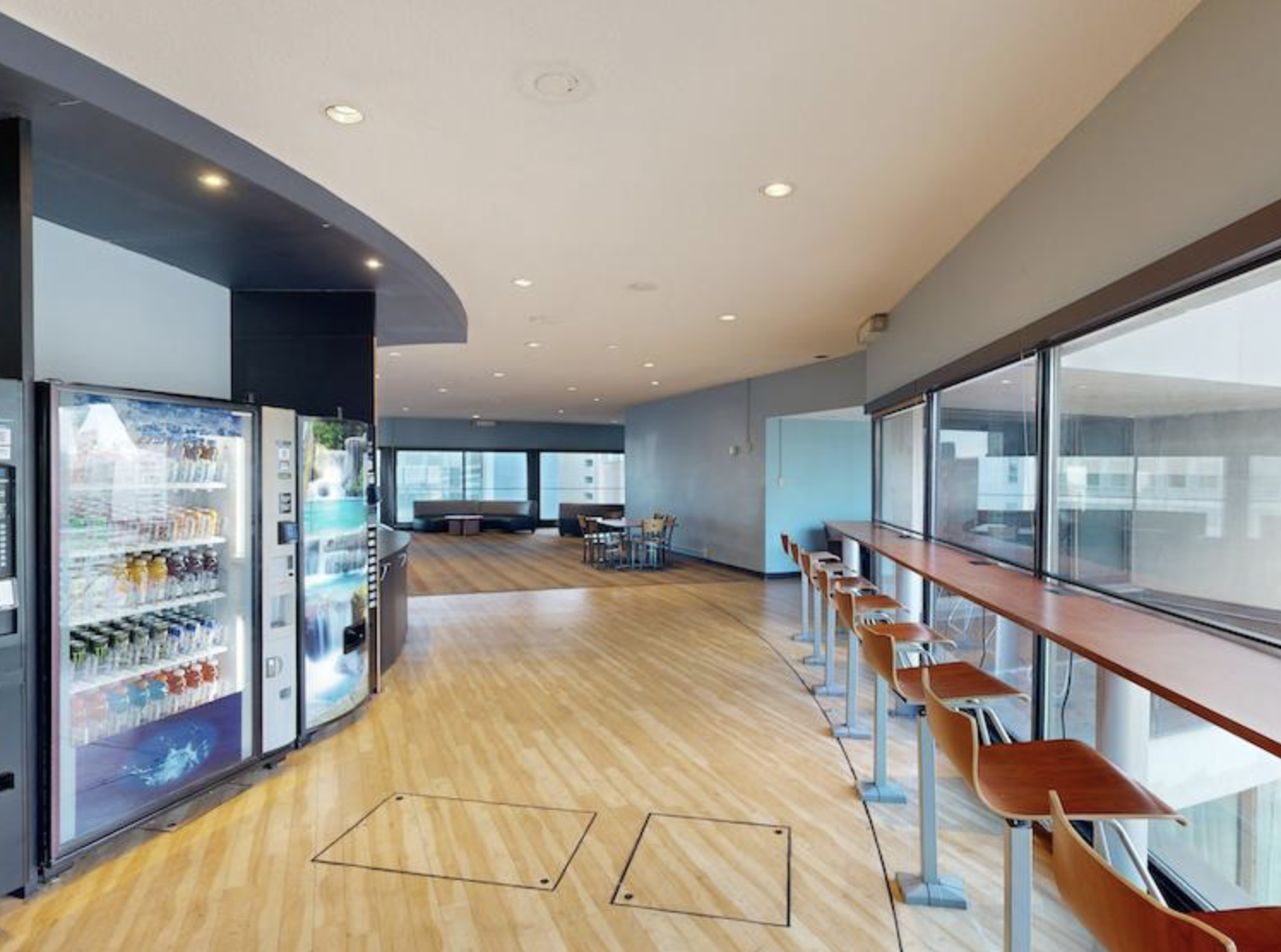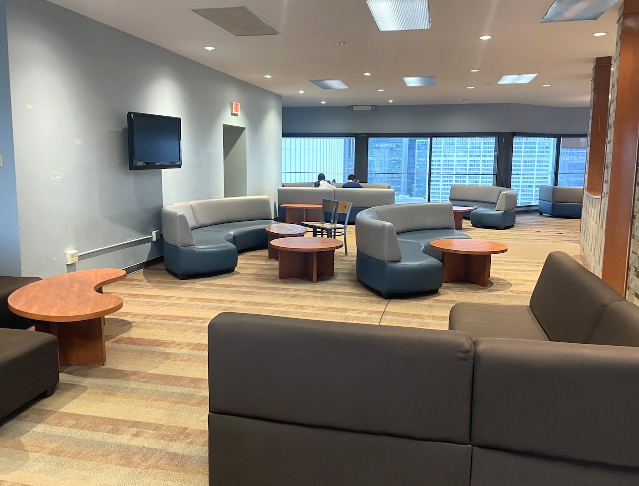 Lounge panoramique au dernier étage avec vue sur la ville