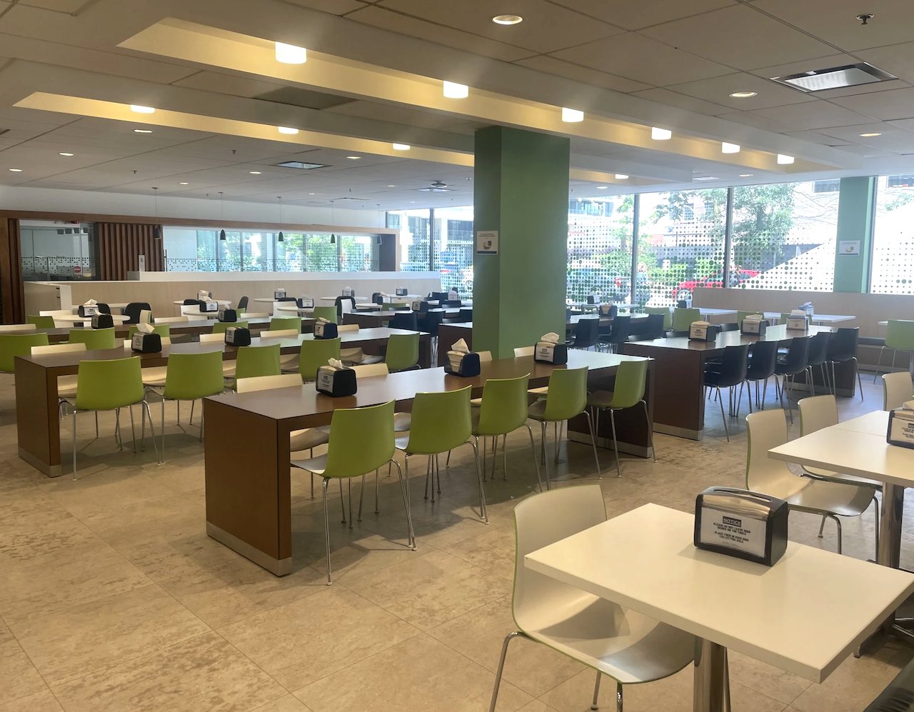 Chaque matin à partir de 7h30, les jeunes profitent d’un buffet en libre-service au Garden Halls : viennoiseries, croissants jambon-fromage, buns bacon-œuf, toasts, yaourts, céréales, fruits et jus.