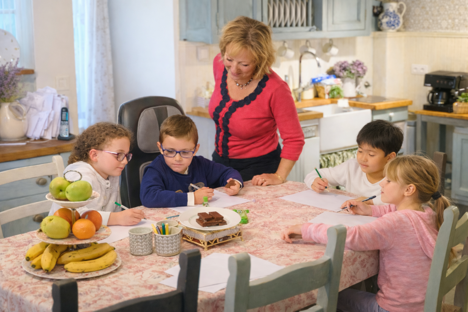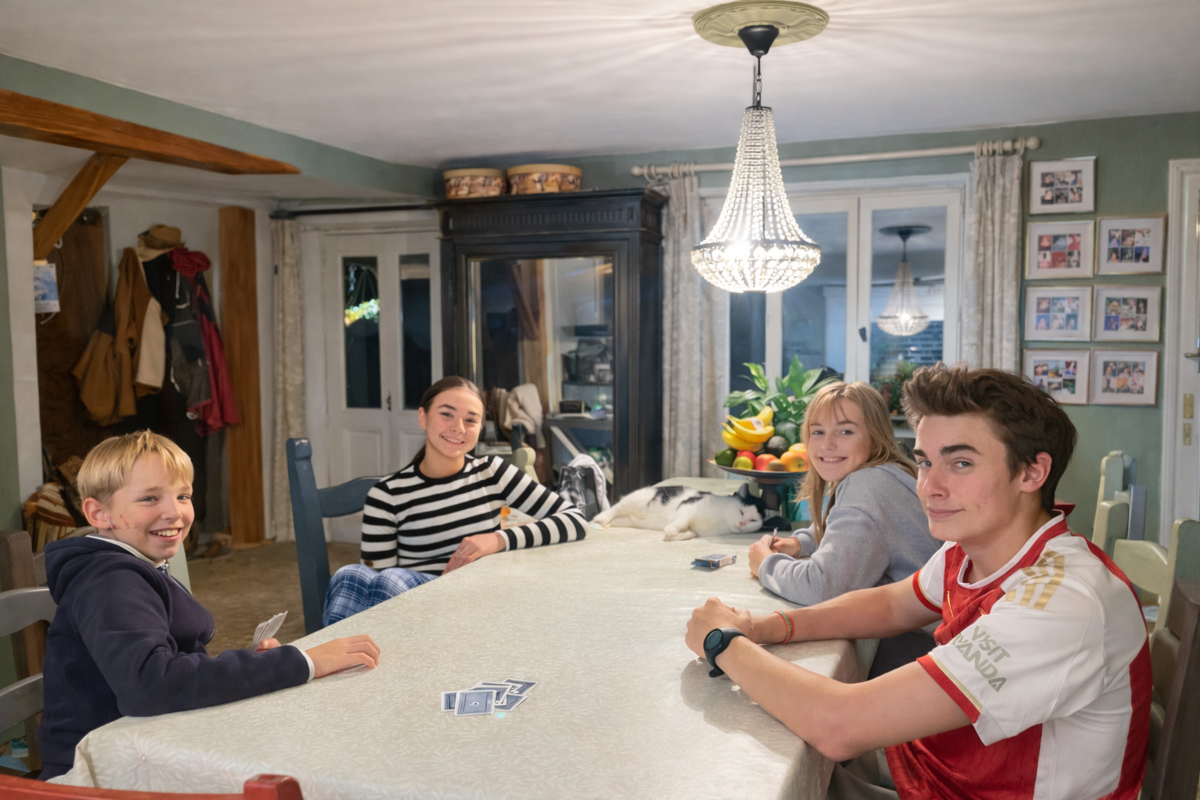 Maddie et Oliver sont toujours à la maison et avec nos jeunes pendant les vacances (zone A). Edward et Henry viennent surtout pendant les grandes vacances.