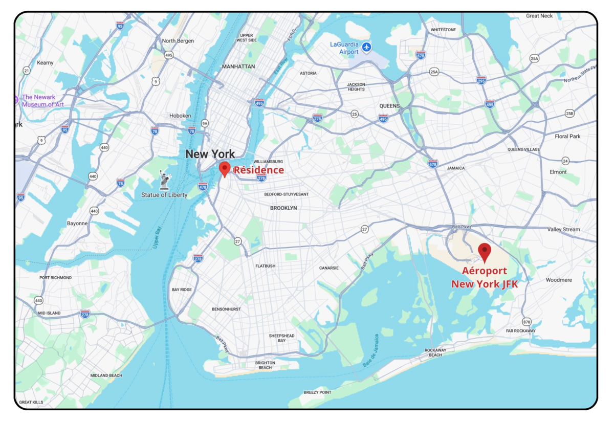 Le transfert aéroport est inclus. Transferts aéroport Aller-Retour JFK (arrivées entre 12h-18h et retours 17h-23h). Une arrivée et un départ en-dehors de ces horaires sont possibles, mais avec un taxi que vous prendrez vous-même (simple et sécurisé - comptez environ $195 par trajet)
