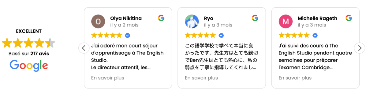 The English Studio accueille un nombre raisonnable d’apprenants : cela leur permet de vous connaître, vous accompagner et suivre votre progression. Elle prend le temps d'écouter vos objectifs et d’adapter nos conseils.