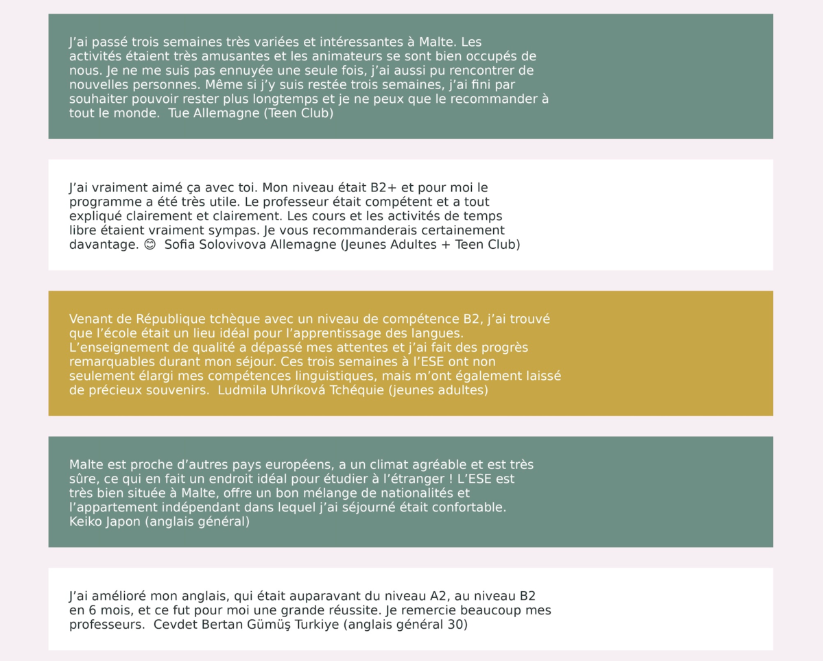 Avant l’arrivée, les élèves peuvent passer le test de niveau en ligne ESE (à compléter au moins 14 jours avant le début du séjour).