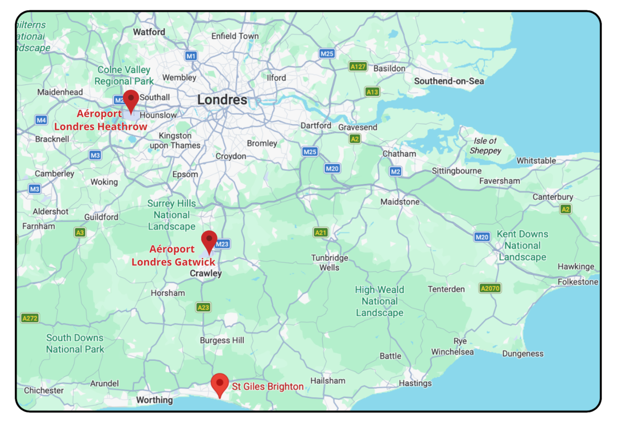 Sinon, St Giles Brighton vous propose des transferts privés. Attention +40€ par heure d'attente.