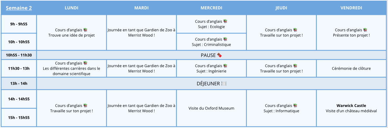 👉 Chaque thème inclut un intervenant invité (Guest Speaker), des visites d’étude, des projets en groupe, des présentations, des activités liées à la culture britannique.