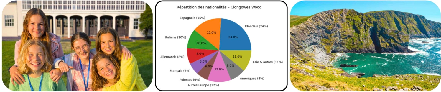 L’environnement est résolument international, avec 20 à 30 nationalités représentées chaque semaine et moins de 6 % de Français, garantissant une immersion réelle. Les jeunes vivent une véritable expérience de pensionnat irlandais, favorisant l’autonomie, la confiance en soi et l’ouverture d’esprit, dans un cadre bienveillant et structuré.