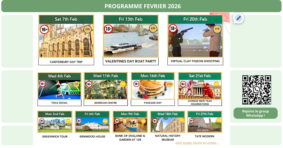 💡Bon à Savoir : Sur le groupe WhatsApp, vous trouverez toutes les informations complémentaires : heures et lieux de rendez-vous, billets, mises à jour… et même les photos !