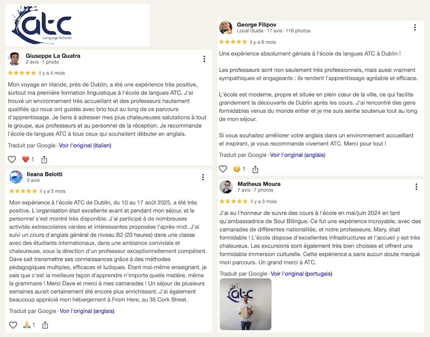 ATC bénéficie d’une réputation internationale solide auprès des universités et de toutes les structures académiques. Les enseignants d’ATC sont tous diplômés et titulaires d’un certificat ELT reconnu, garantissant un enseignement sérieux, structuré et conforme aux standards internationaux.